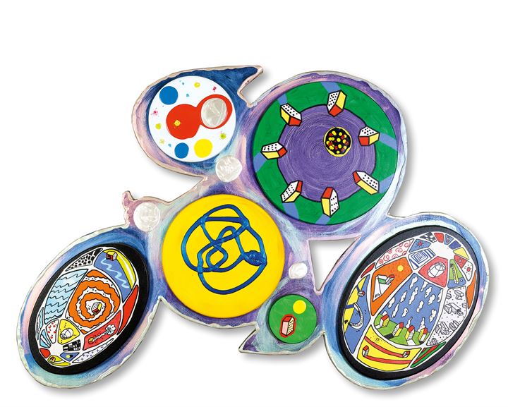 DE PARIS ENRICO Mel-Belluno 1960 "Ciclista cosmico" Torino 1995 70x98 vernici...