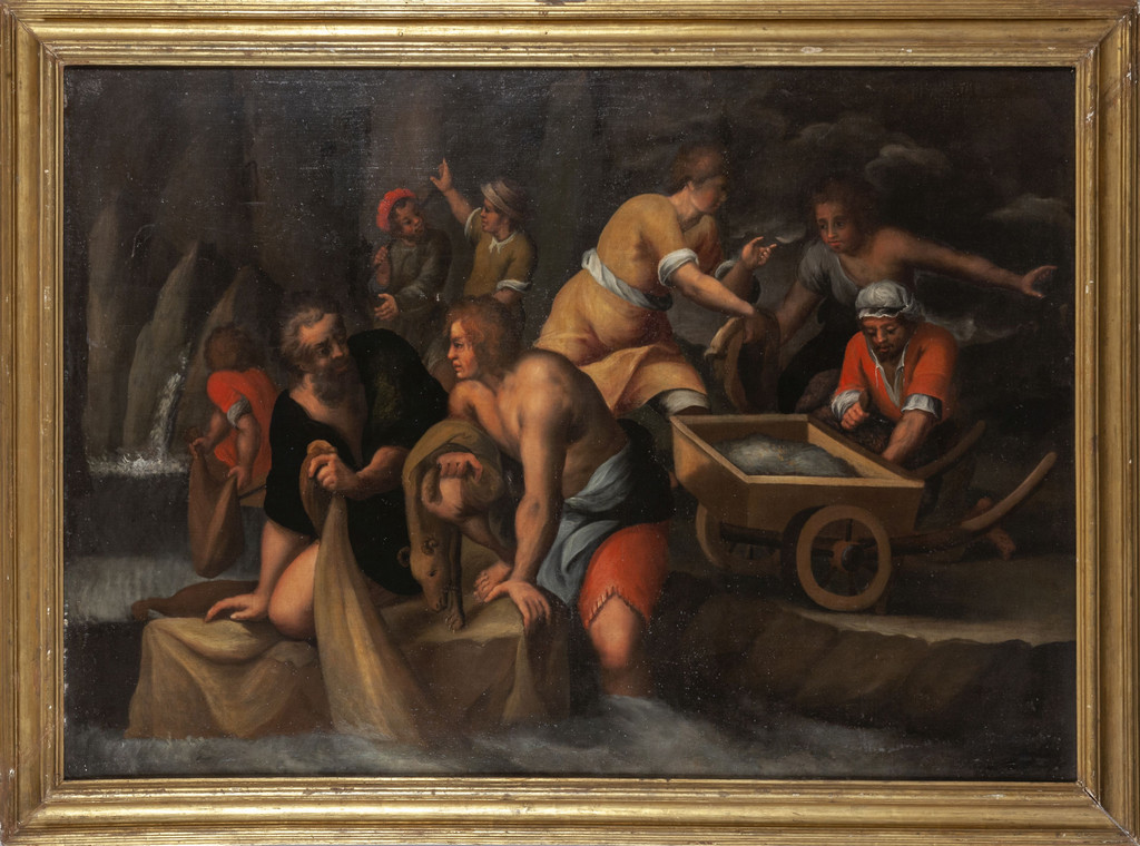 Scuola fiorentina sec.XVII 'La bottega dei conciatori di pelli' olio