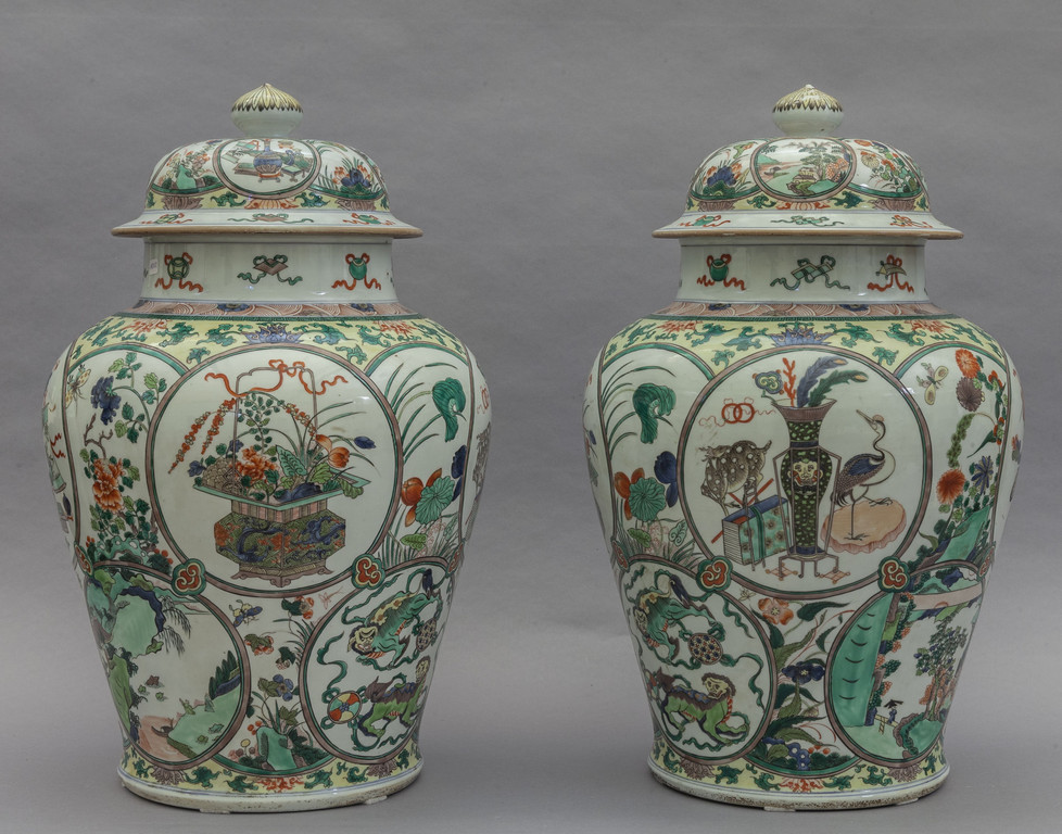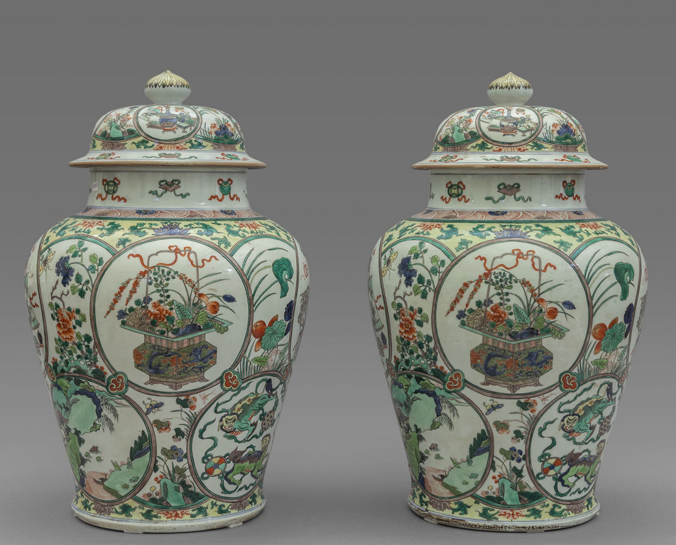 Coppia di potiches in porcellana policroma Samson sec.XIX