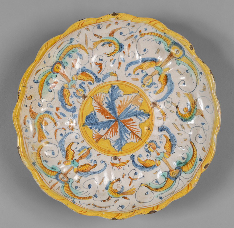 Crespina in maiolica a gran fuoco raffigurante fogliame a colore alternato Deruta sec.XVII