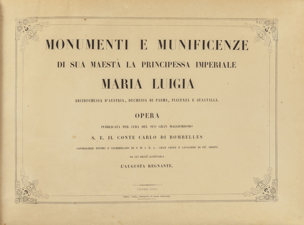 'Monumenti e munificenze di S.M. La Principessa Imperiale Maria Luigia' Parigi dalla tipografia di Paolo Renouvard Parma 1845