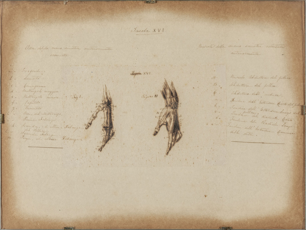 Diciannove disegni raffiguranti studi di anatomia umana sec.XIX