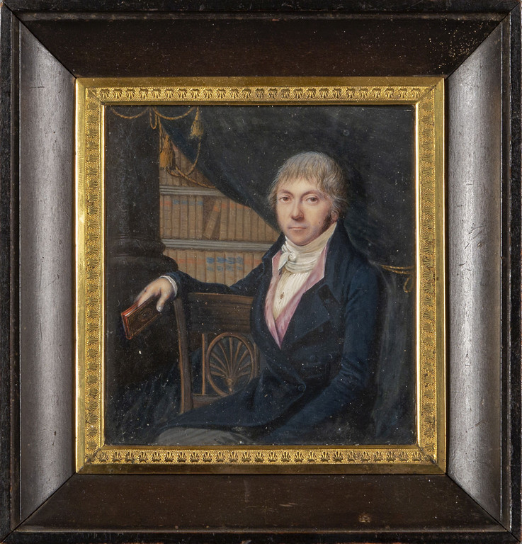 'Ritratto di letterato' miniatura cornice in metallo dorato e legno ebanizzato sec.XIX
