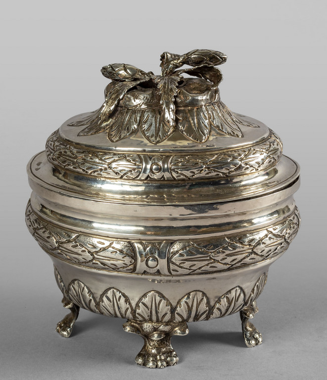 Zuccheriera Luigi XVI in argento finemente sbalzato Genova punzone della Torretta sec.XVIII