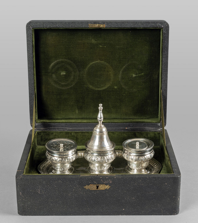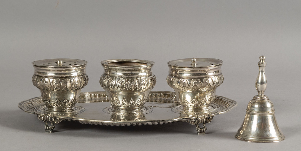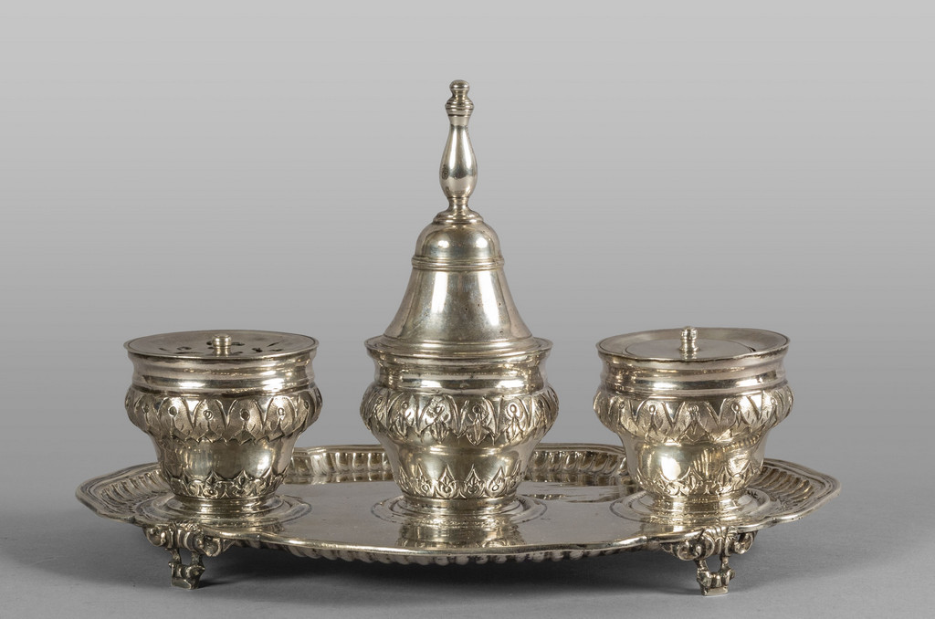Calamaio Luigi XV in argento sbalzato Genova punzone della Torretta sec.XVIII