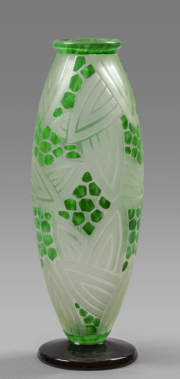 Le Verre Francais vaso in vetro lavorato nei toni del verde Francia metà sec.XX