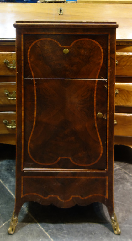 Mobiletto lastronato in palissandro e filettato in bois de rose uno sportello ed un cassetto sul fronte sec.XIX