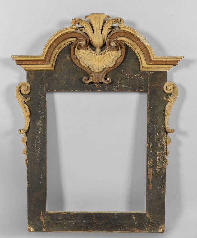 Cornice Luigi XIV in legno intagliato e laccato nero ed oro sec.XVIII