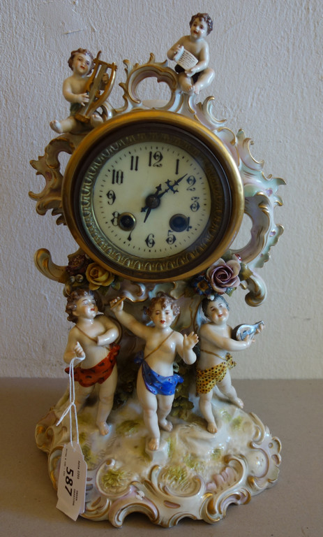Orologio in porcellana policroma decorato con putti inizi sec.XX