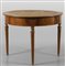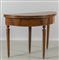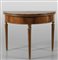 Tavolo da gioco a mezza luna lastronato in mogano con quattro gambe troncopiramidali piano apribile a libro sec.XIX