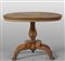 Tavolino da centro di forma ovale una gamba centrale che alla base si divide in quattro gambe riccamente decorato in pirografia I metà sec.XIX