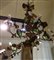 Lampadario a sei luci in metallo dorato decorato a tralci d'uva con grappoli in vetro verde sec.XIX (difetti)