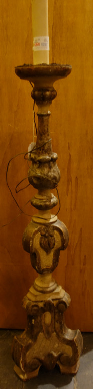 Candeliere Luigi XIV finemente intagliato e laccato montato a lampada sec.XVIII