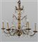 Lampadario Luigi XVI con fusto in legno intagliato e dorato a sei luci ricca decorazione in cristalli Genova sec.XVIII
