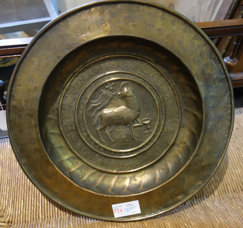 Piatto elemosiniere in rame decorato con Agnus Dei Nuremberg