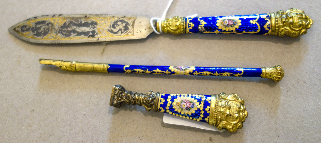 Tre oggetti da scrittoio in bronzo e smalto Francia sec.XIX