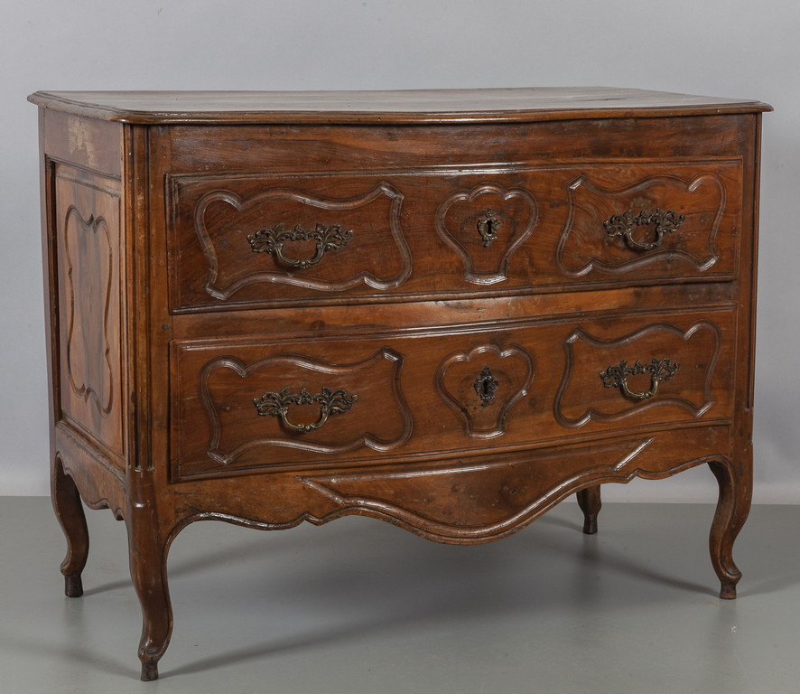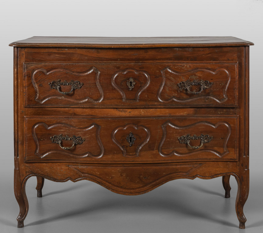 Comò Luigi XIV a due cassetti movimentato sul fronte Emilia sec.XVIII