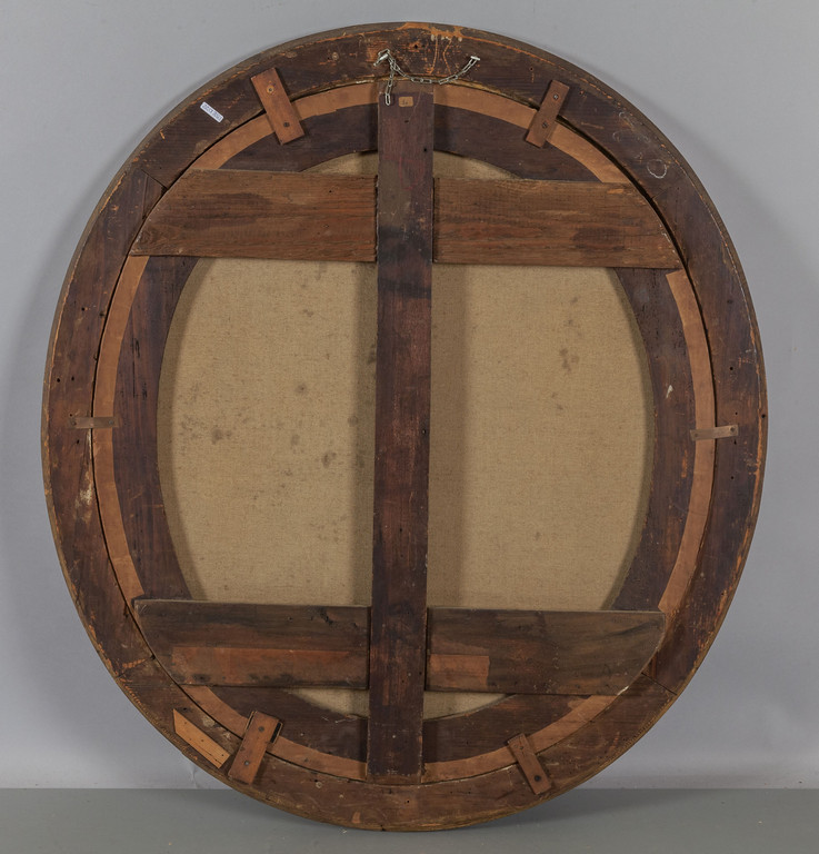 Scuola inglese sec.XIX 'Ritratto di famiglia con giovane suonatore di pianoforte' olio di forma ovale