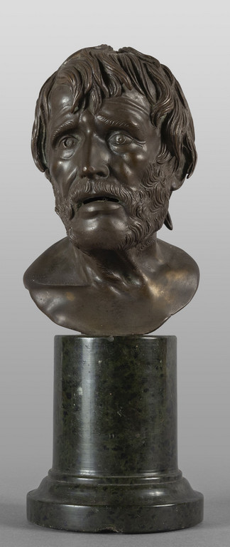 Seneca scultura in bronzo poggiante su base in marmo sec.XIX