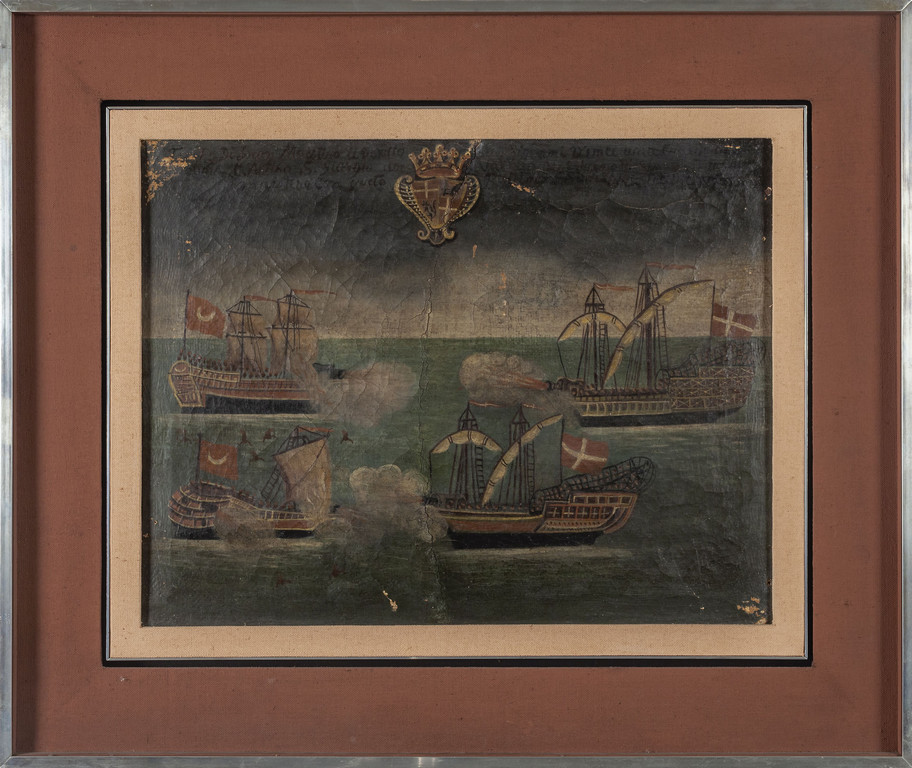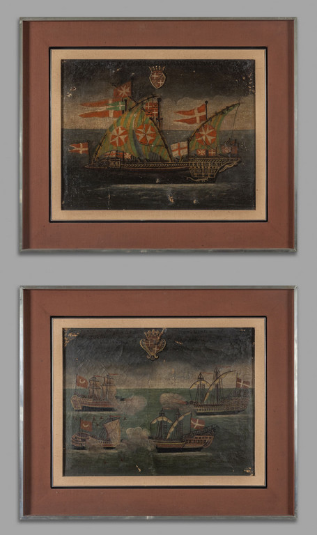 'Galeone' e 'Battaglia navale' coppia di olii sec.XIX