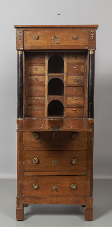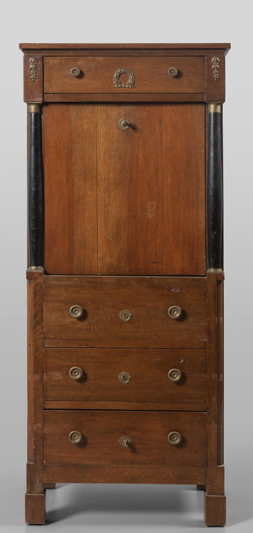 Piccolo secretaire Impero in mogano a quattro cassetti ed uno sportello sec.XIX
