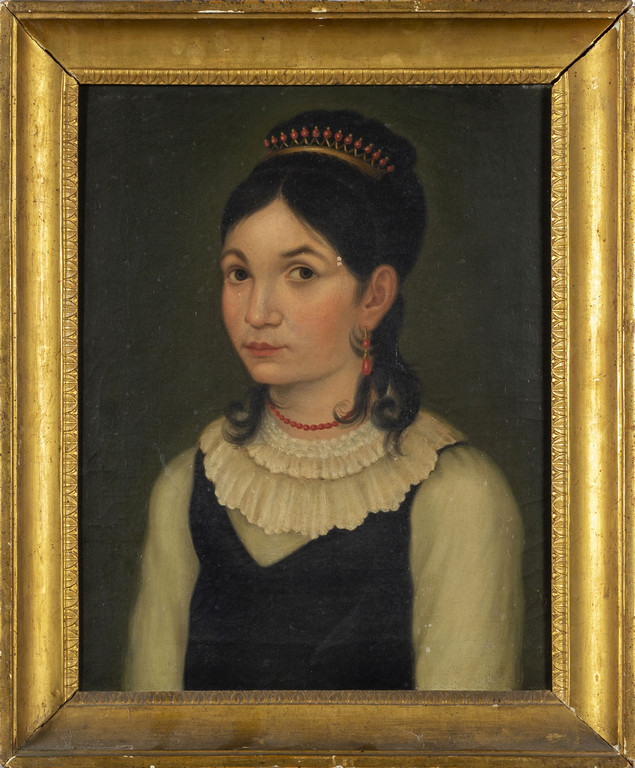 Scuola napoletana inizi sec.XIX 'Fanciulla con coralli' olio