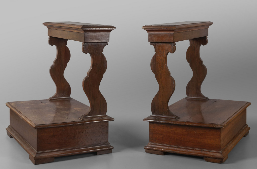 Coppia di grandi inginocchiatoi Luigi XIV in noce