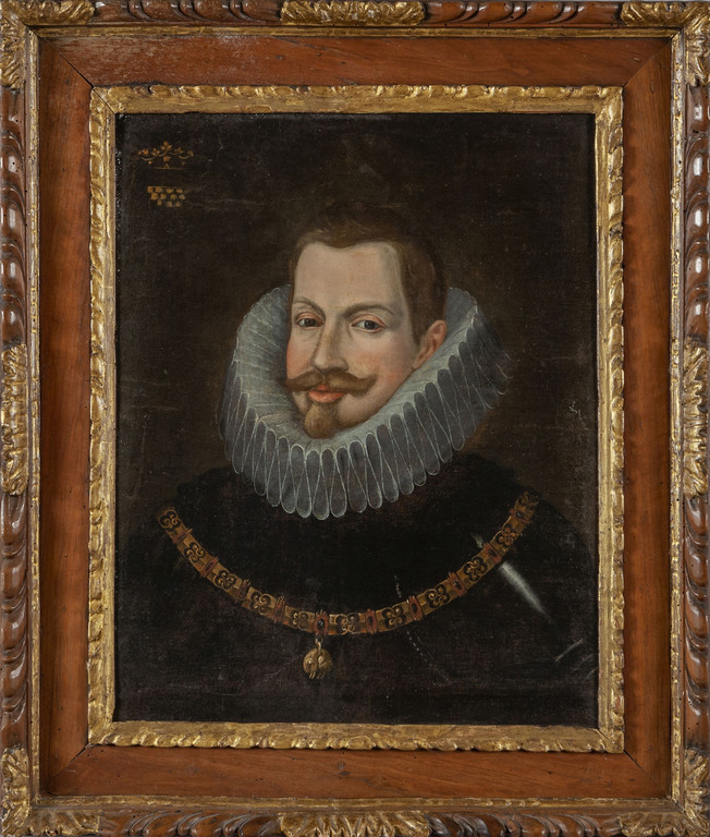'Ritratto di condottiero con collarino bianco e toson d'oro' olio sec.XVIII