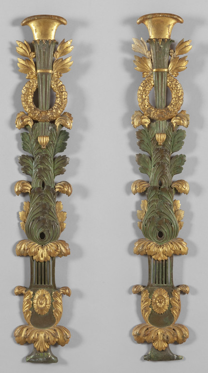 Coppia di fregi Impero in legno intagliato dorato e laccato Toscana inizi sec.XIX