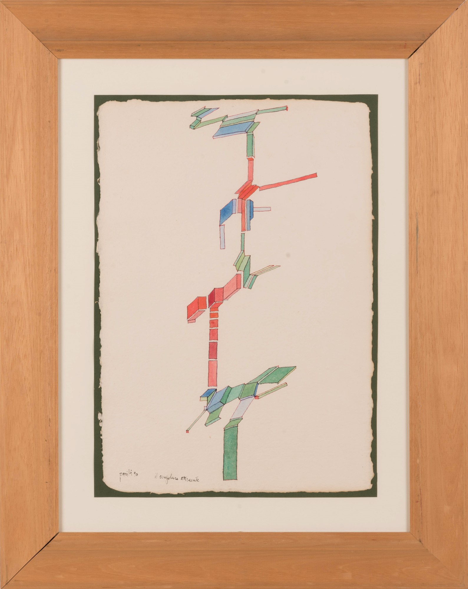 Achille Perilli (Roma, 1927 - ) Il singolare attraente Acquerello su carta cm 44x31; con cornice cm 68x54 1990
