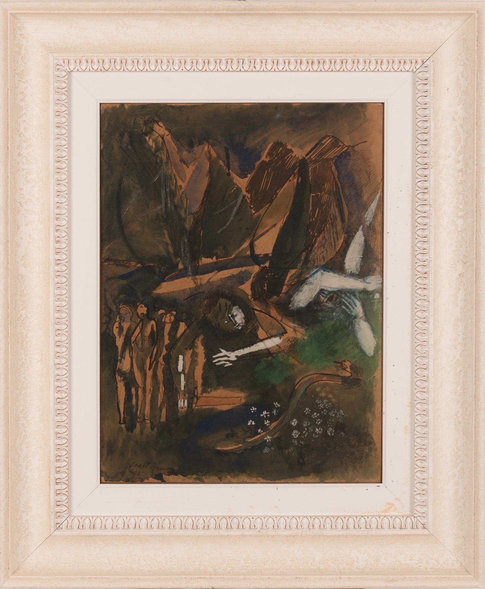 Bruno Saetti (Bologna, 1902 - Bologna, 1984) Un angelo per il paradiso Tecnica mista su faesite cm 48x36; con cornice cm 72x60 1962