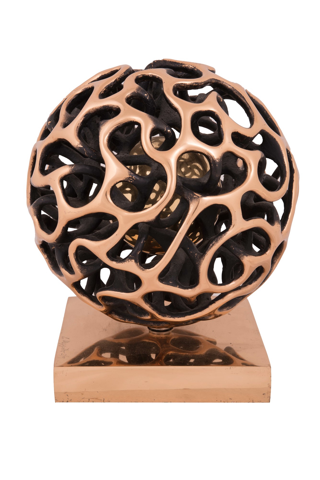 Gianfranco Meggiato (Venezia, 1963 - ) Sfera aperta con sfera Scultura in bronzo Ø 33 cm 2008