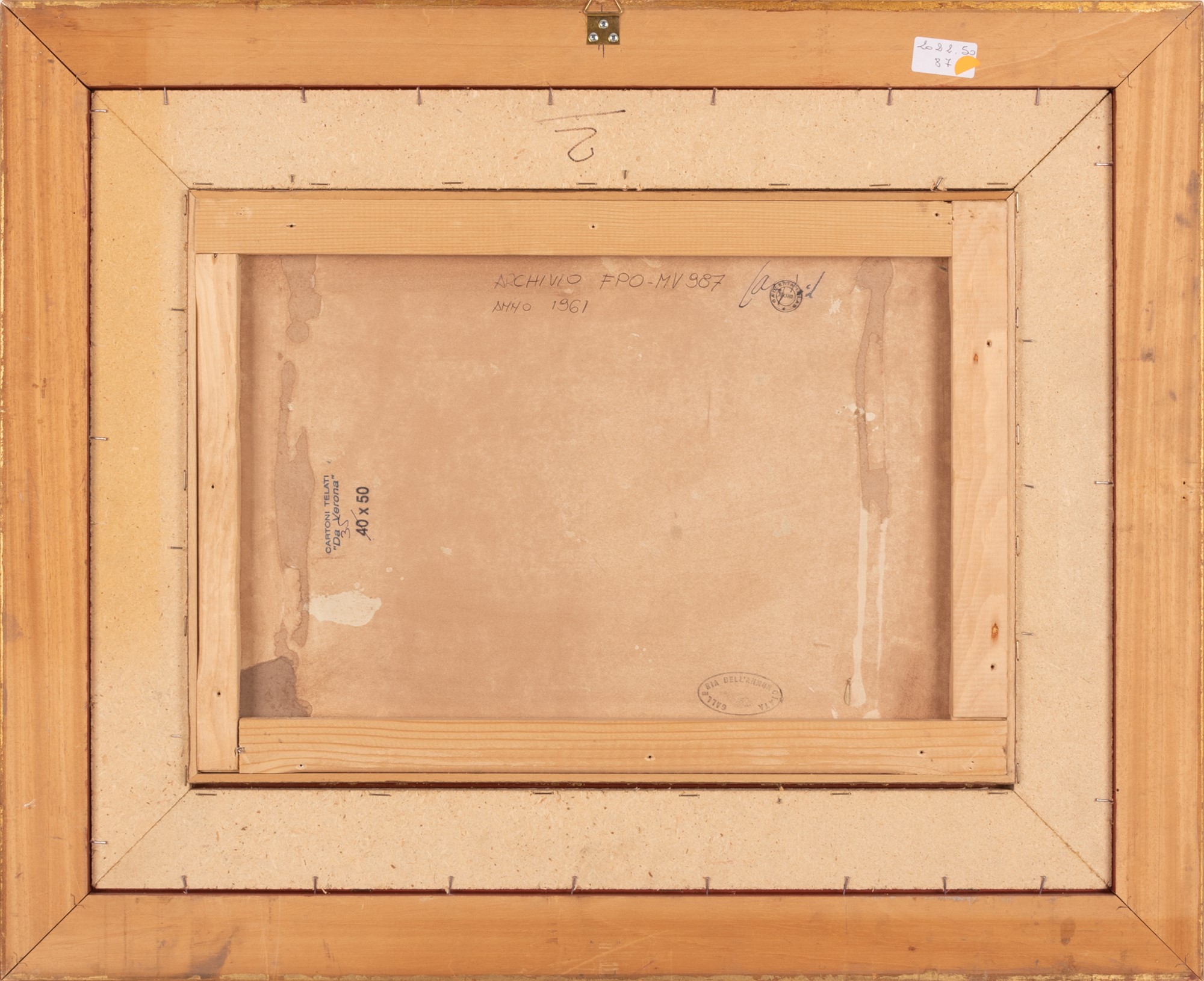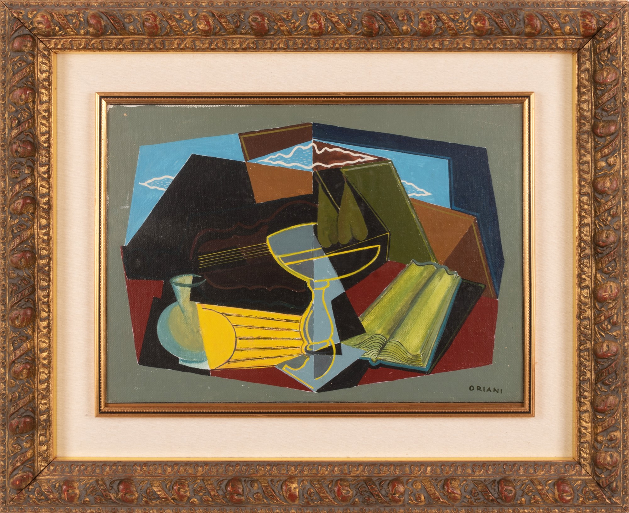Pippo Oriani (Torino, 1909 - Roma, 1972) Natura morta Tecnica mista su cartone telato cm 35x50; con cornice cm 61x73 1961