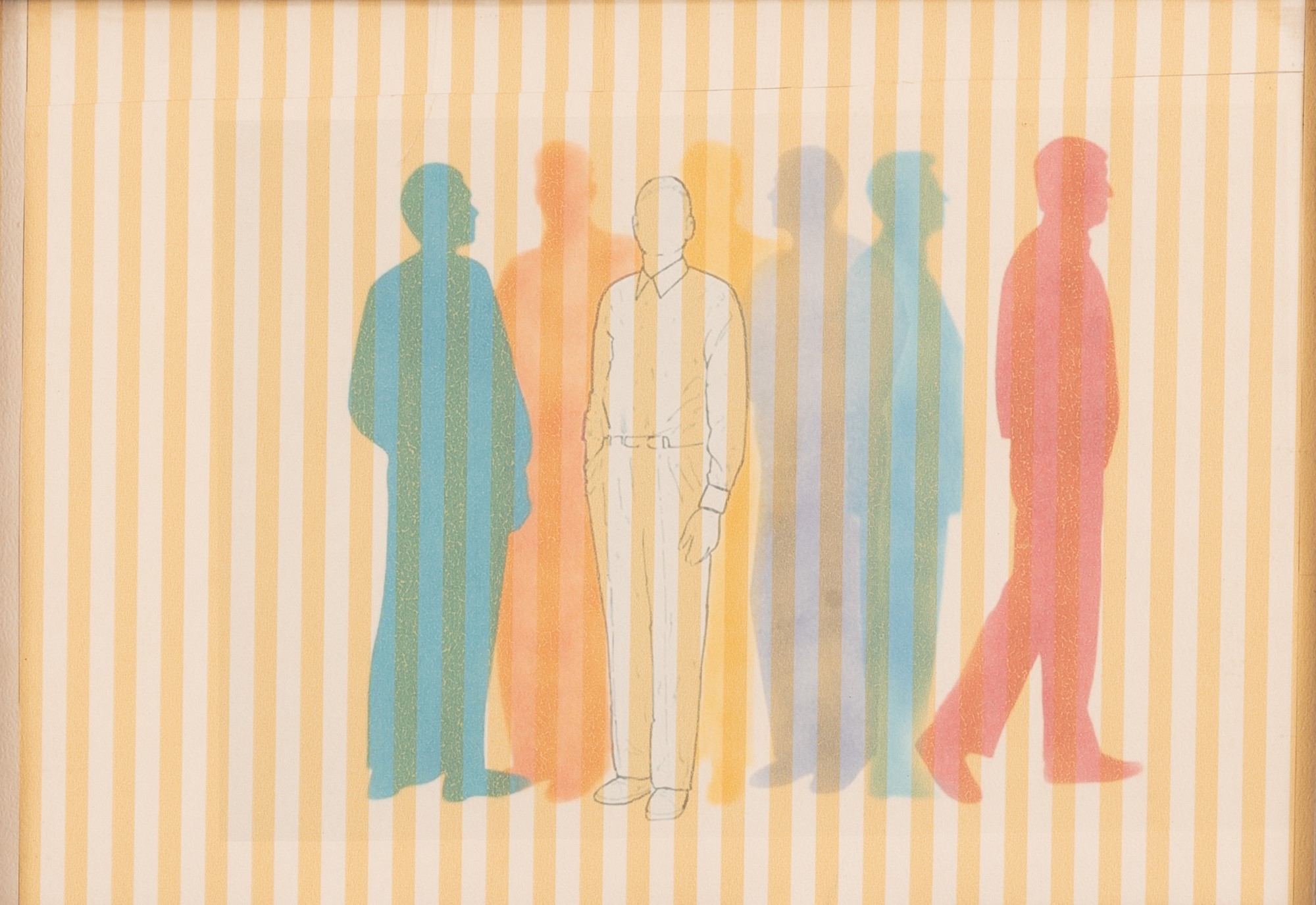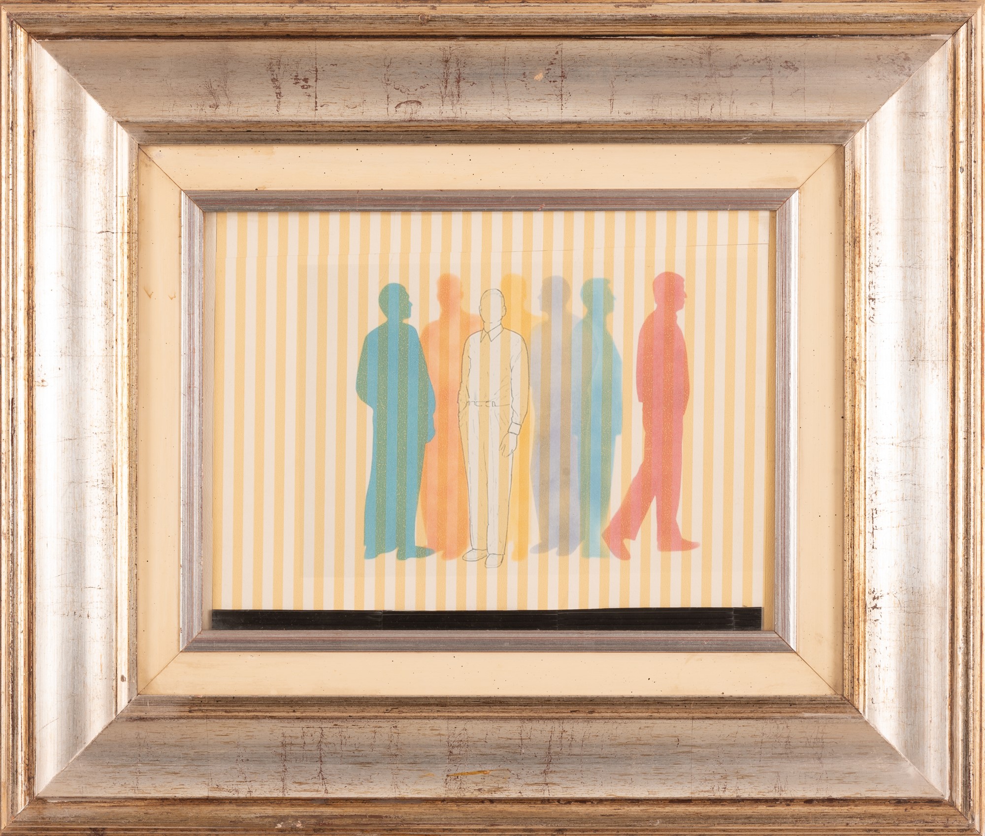 Renato Mambor (Roma, 1936 - Roma, 2014) Protettori Tecnica mista su carta da parati cm 26x35; con cornice cm 50x60