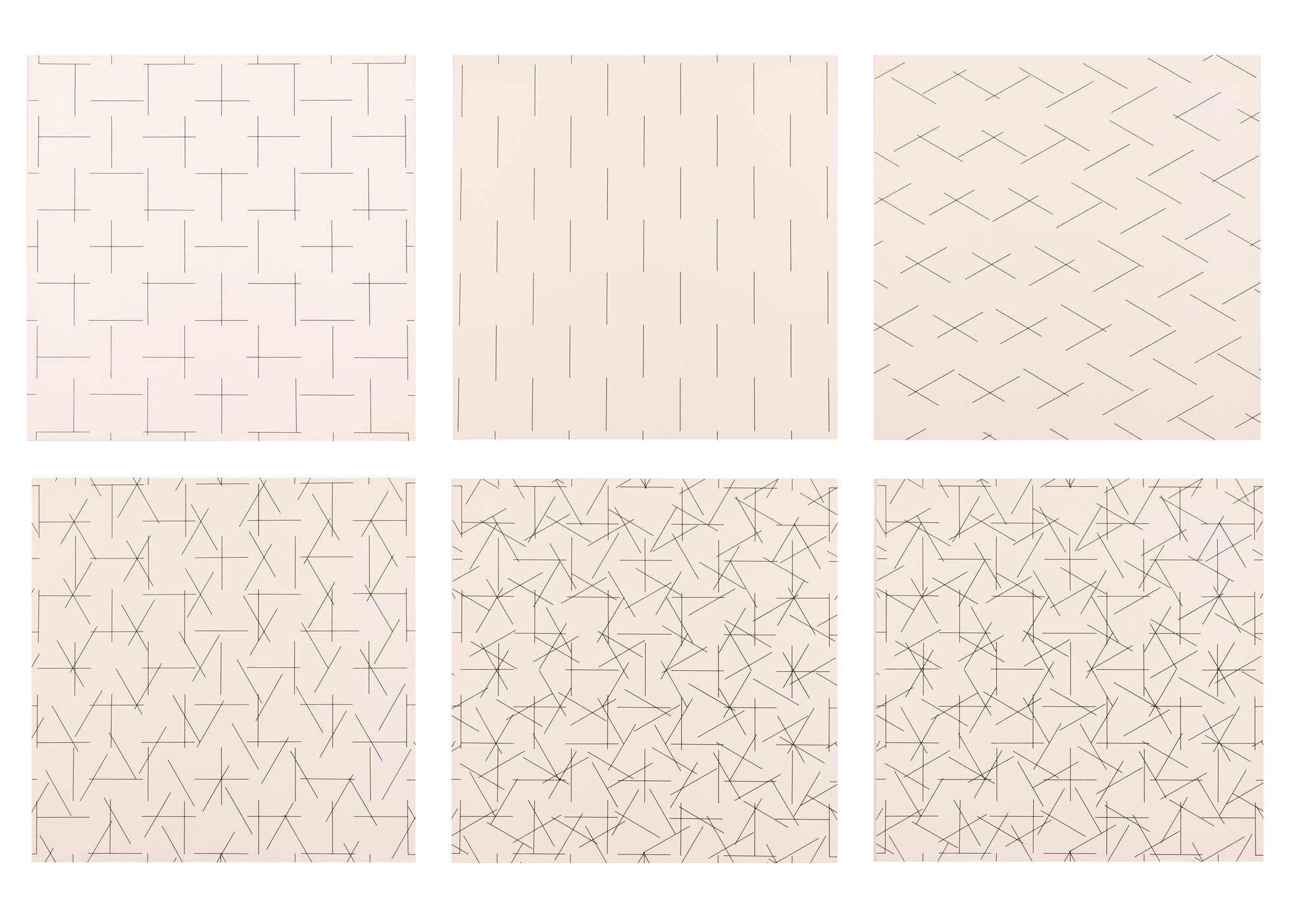 Francois Morellet (Cholet , 1926 - Cholet, 2016) Cartella di 6 litografie a cura di Giovanna Dalla Chiesa e Giuseppe Appella Litografia cm 36,5x36,5 1975