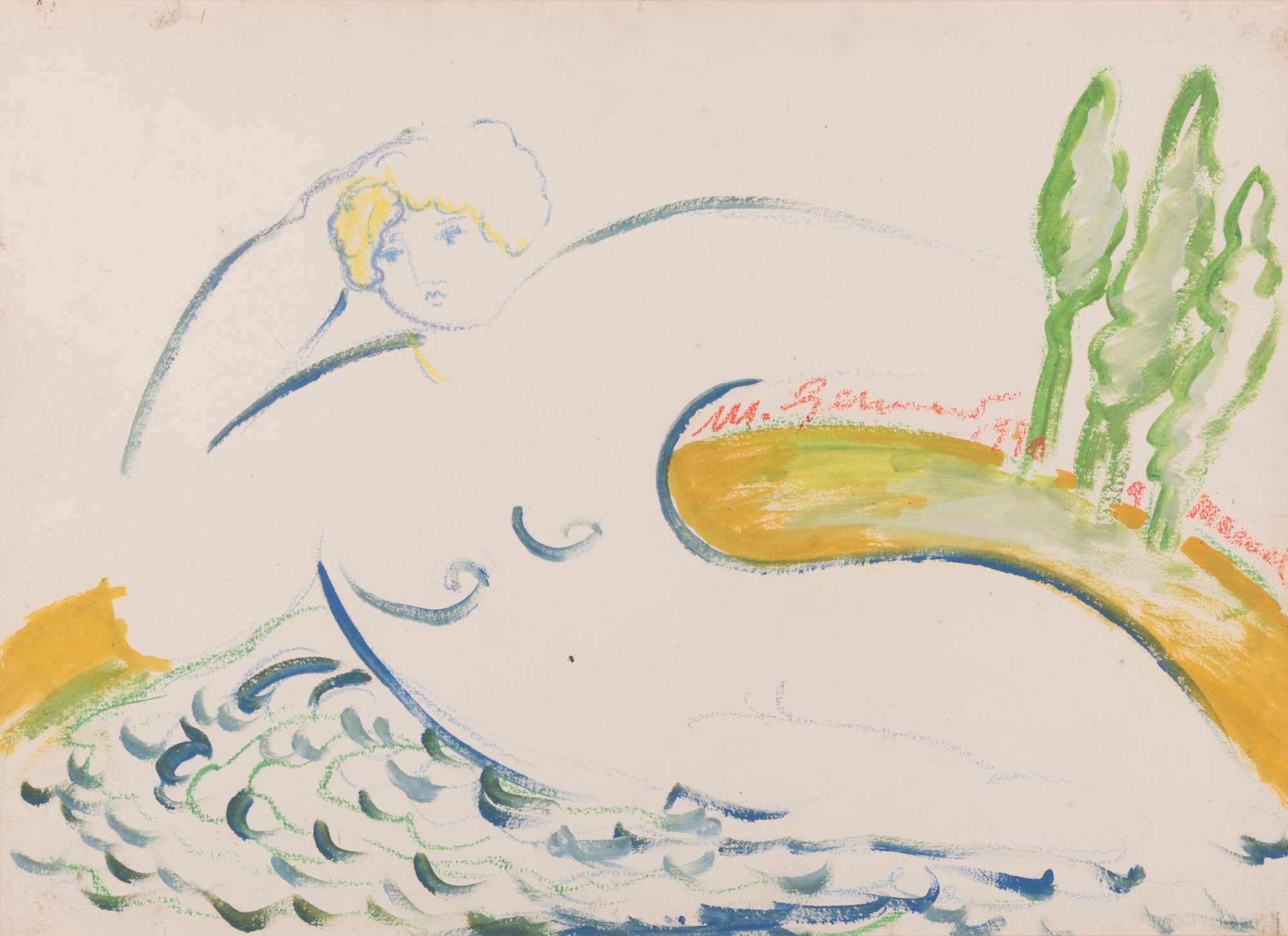 Mimmo Germanà (Catania , 1944 - Busto Arsizio, 1992) Senza titolo Acrilico su carta cm 56x76; con cornice cm 76x93 1990
