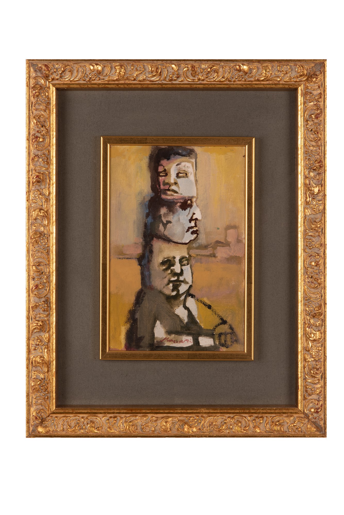Mino Maccari (Siena, 24/11/1898 - Roma, 16/06/1989) Volti maschili Olio su cartoncino telato cm 30x20; con cornice cm 55x45 1970