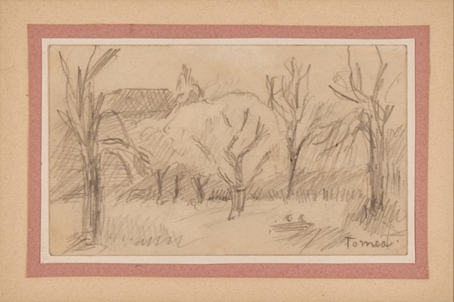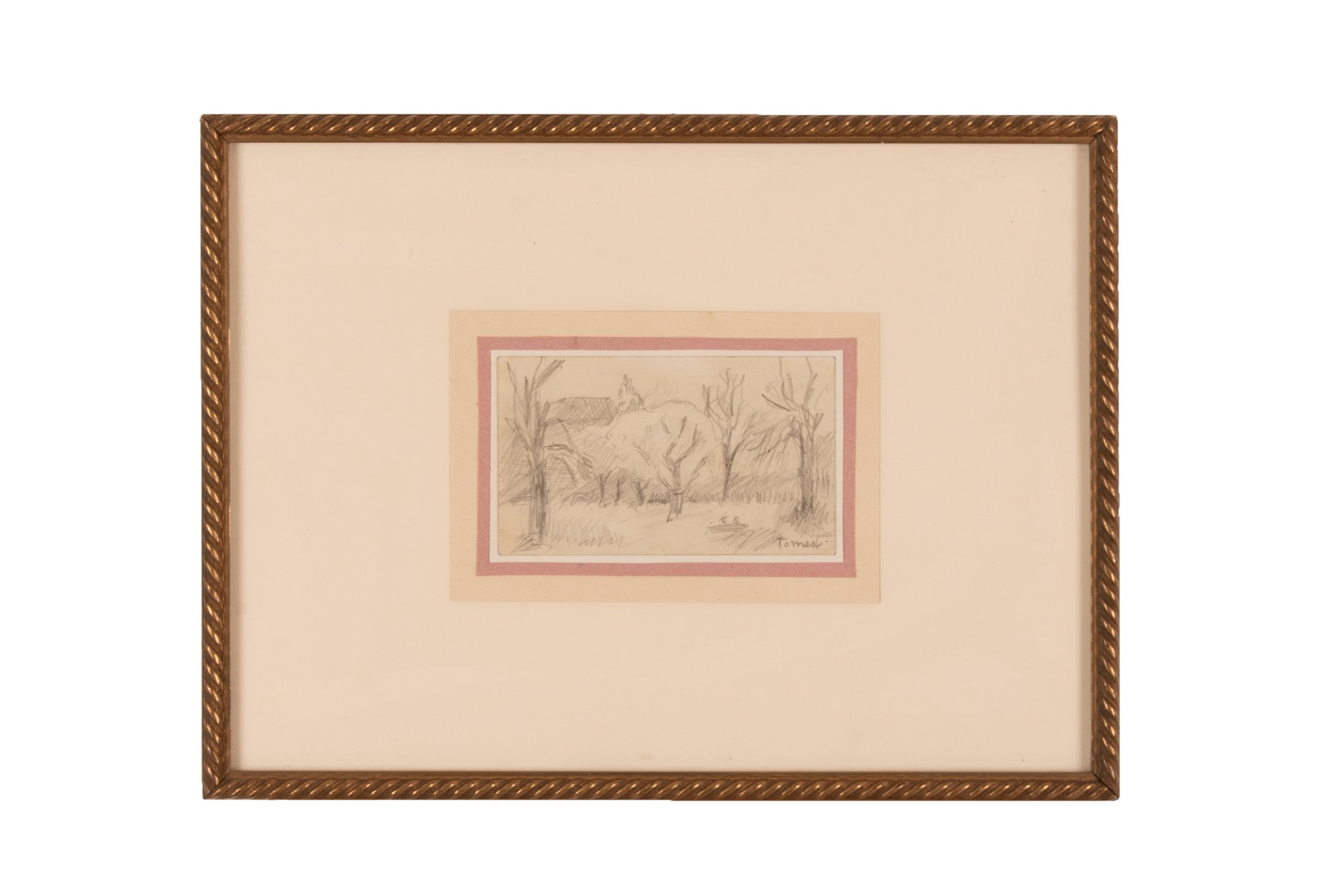 Fiorenzo Tomea (Zoppè di Cadore, 1910 - Milano, 1960) Paesaggio Cadorino Matita su cartoncino cm 7,5x12,5; con cornice cm 25x33 1940