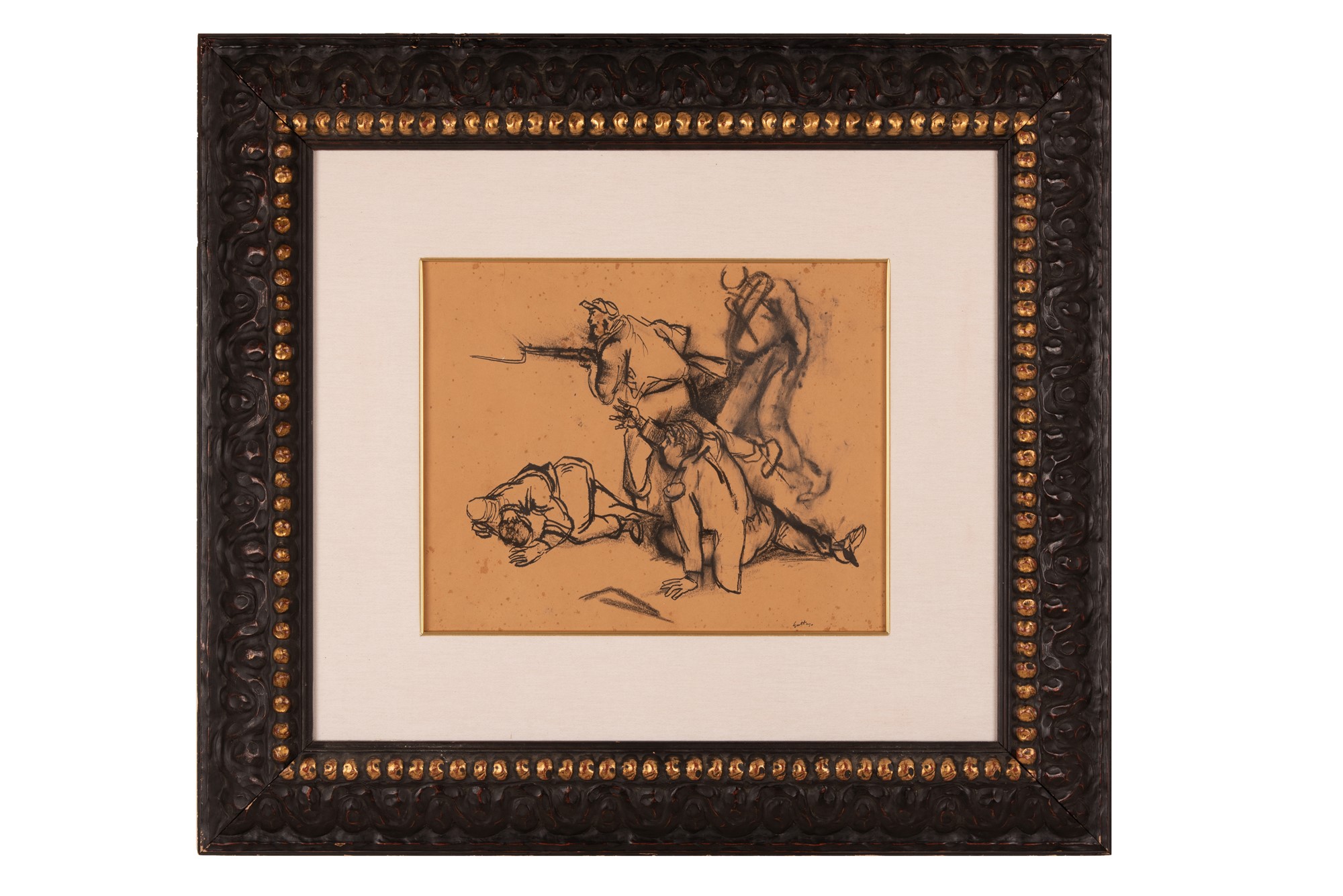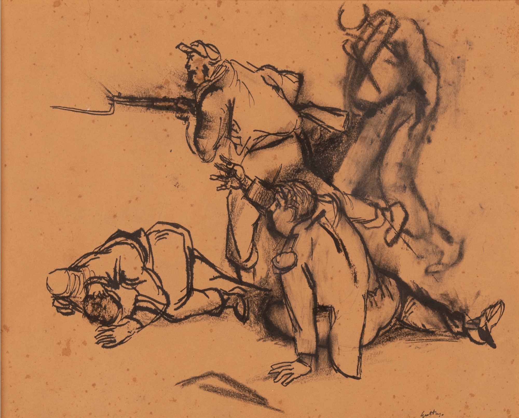 Renato Guttuso (Bagheria, 1911 - Roma, 1987) La battaglia di Ponte dell'Ammiraglio - Roma 1950/1951 Disegno a china su carta cm 32x39; con cornice cm 76x79