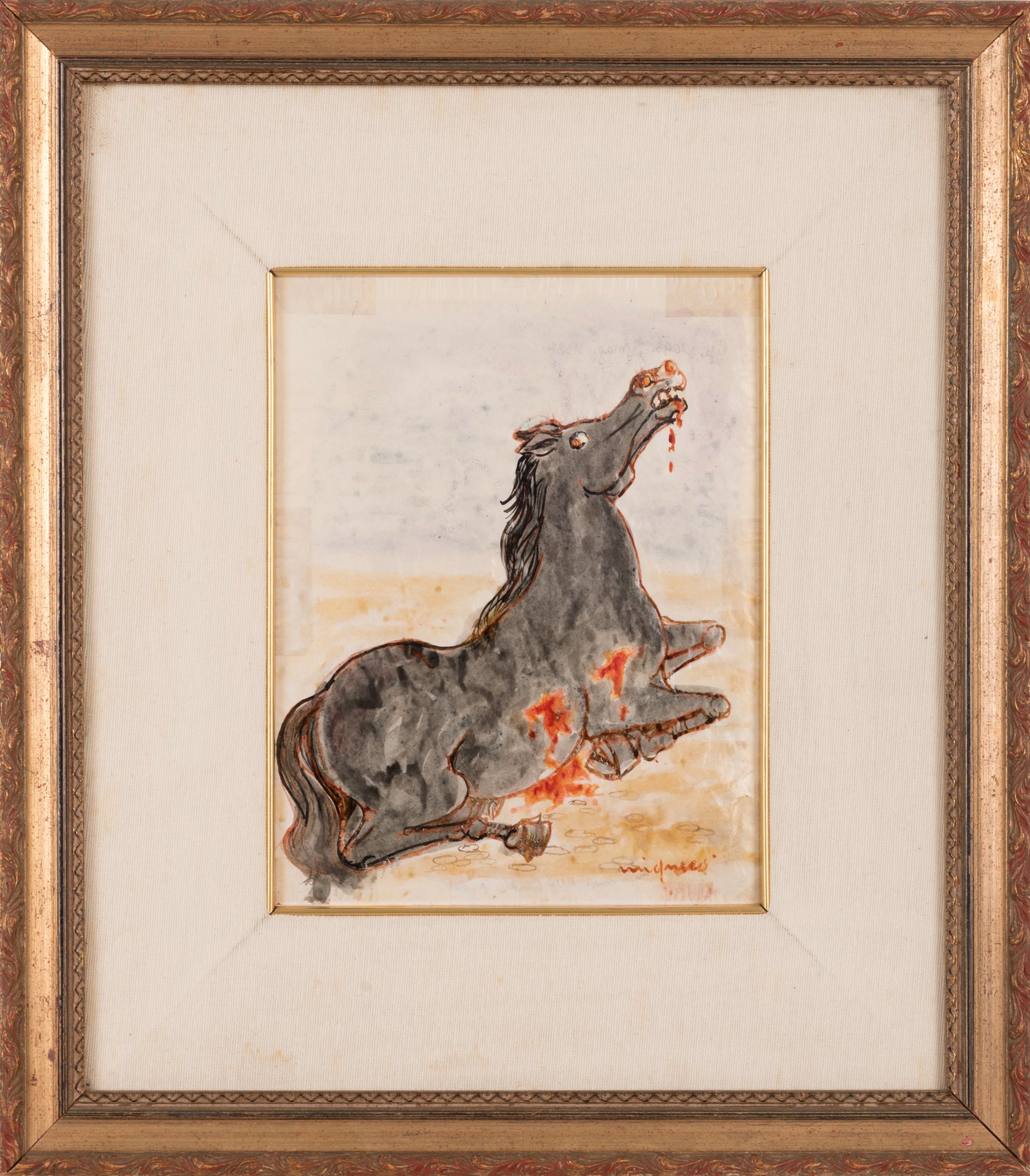 Giuseppe Migneco (Messina, 09/02/1903 - Milano, 28/02/1997) Romanza della guardia spagnola China colorata su carta cm 28x22; con cornice cm 50x42 1986
