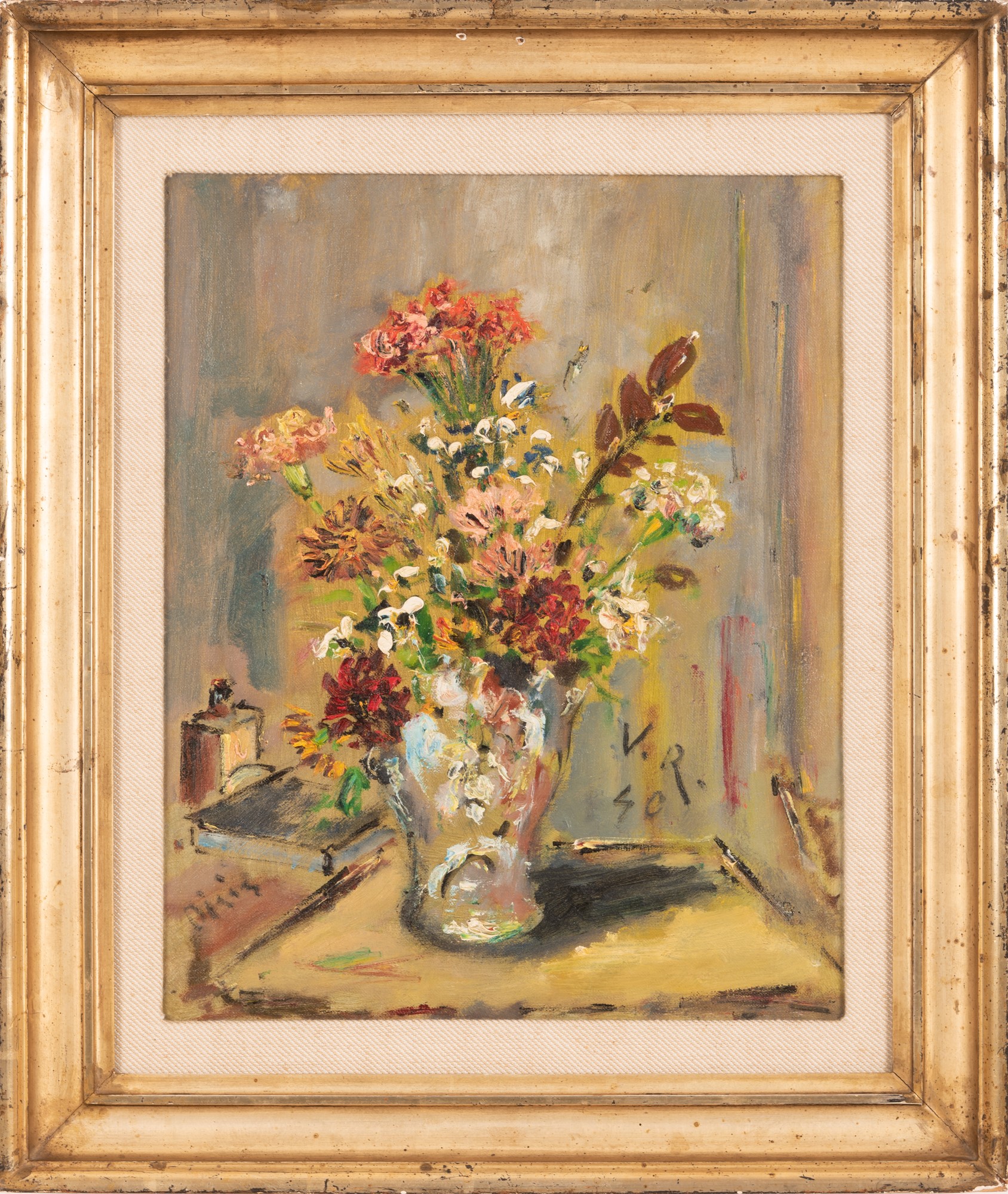 Filippo De Pisis (Ferrara, 11/05/1896 - Milano, 02/04/1956) Vaso con fiori Olio su tela cm 50x40; con cornice cm 67x57 1940