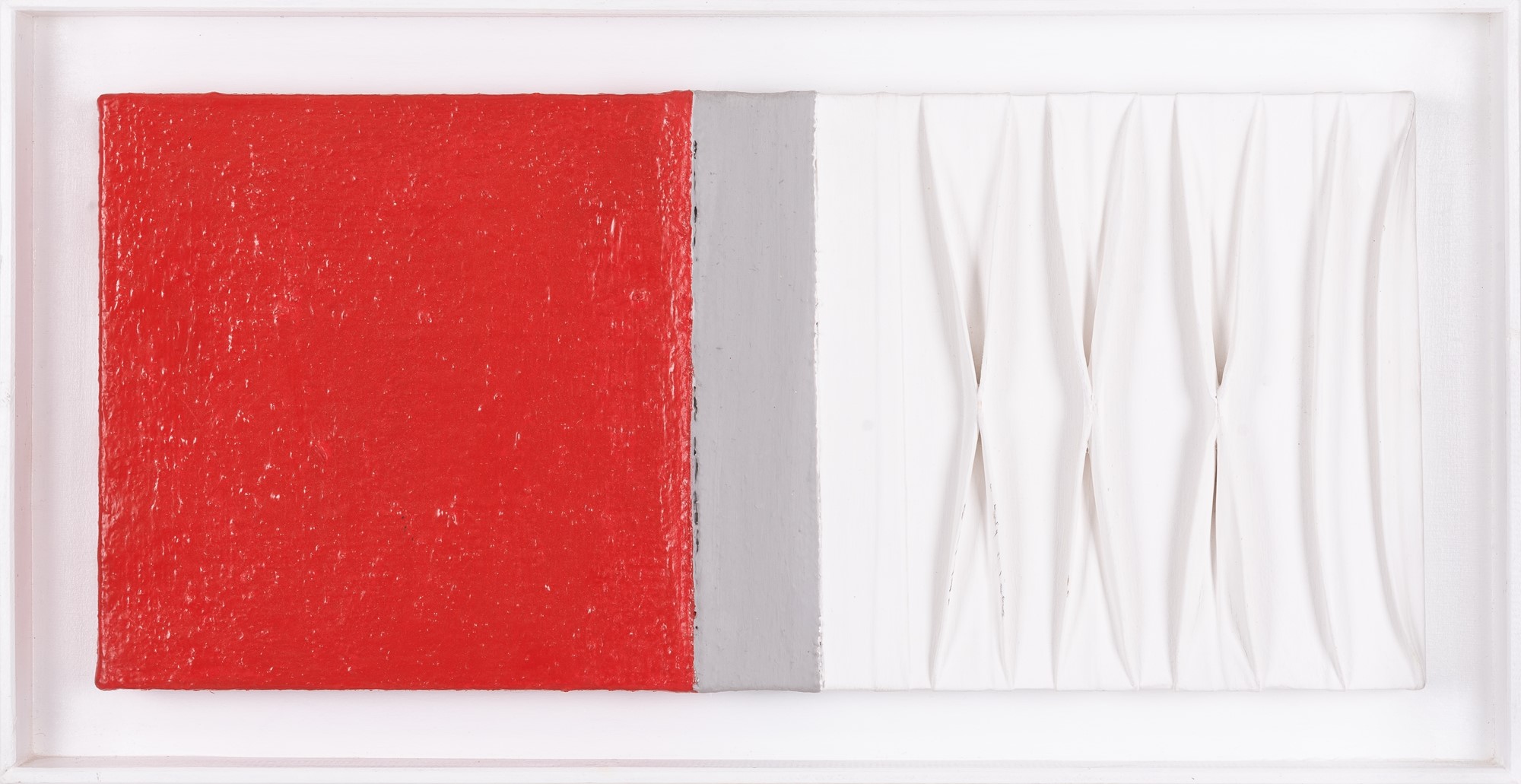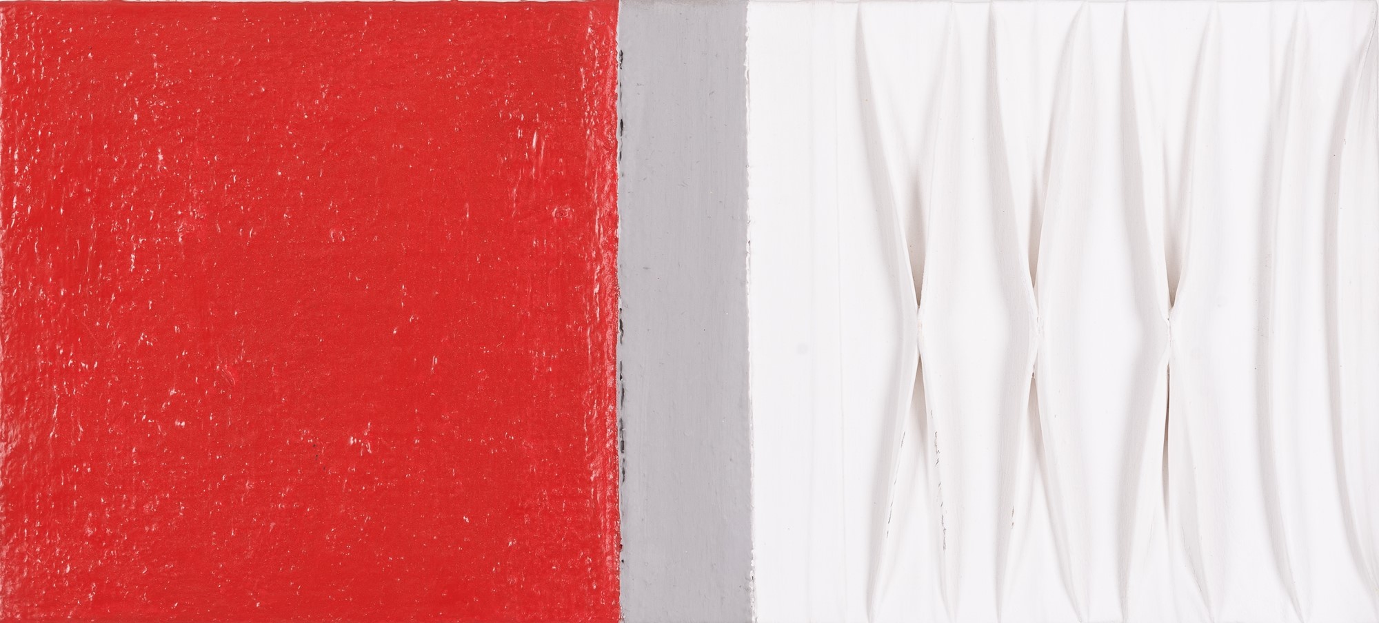Nando Stevoli (Ferrara, 1953 - ) Pleating plissettatura su tavola con calce e cemento cm 34x64 2016