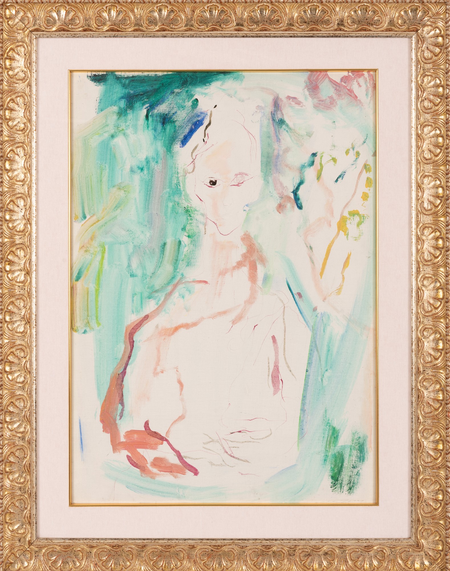 Ernesto Treccani (Milano, 1920 - Milano, 2009) Figura femminile Olio su tela cm 69x48; con cornice cm 92x71 Autentica su foto a firma delll'artista 1500