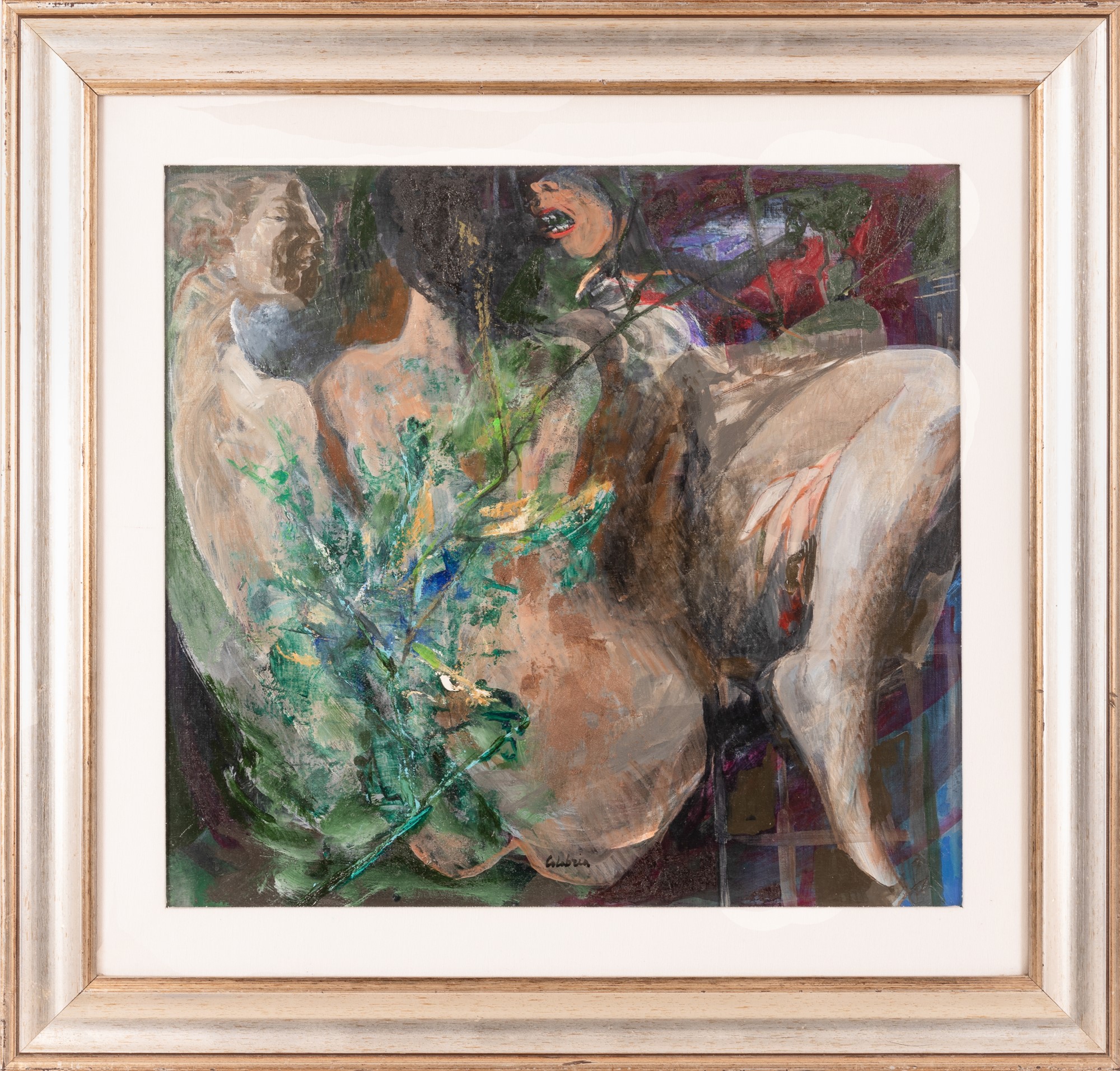 Ennio Calabria (Tripoli, 1937 - ) Scena erotica Olio su tela cm 58x62x; con cornice cm 82x86