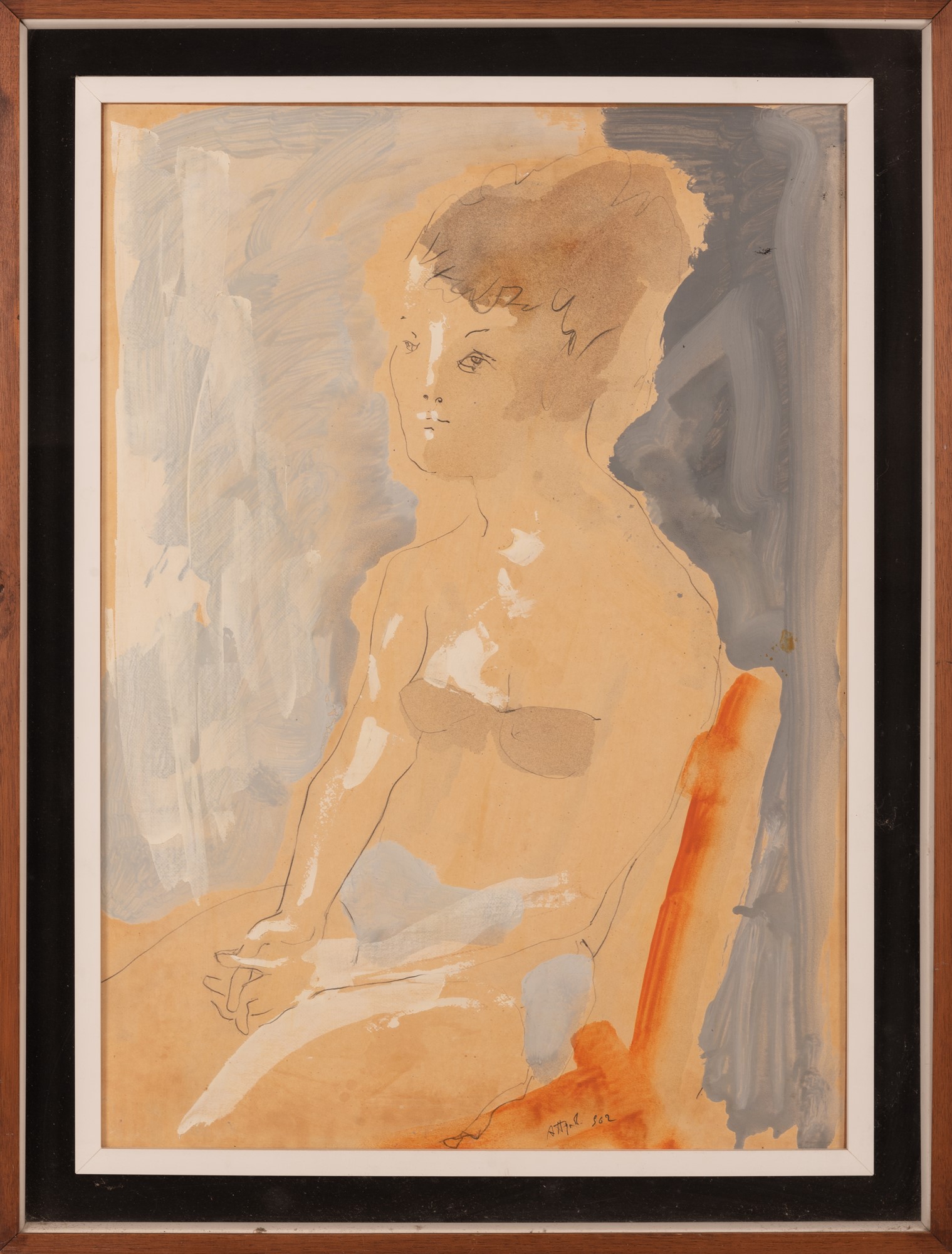 Ugo Attardi (Genova, 12/03/1923 - Roma, 21/07/2006) Figura femminile Tecnica mista su carta cm 70x50 con cornice 83x63 Firmato in basso al centro e sul retro 400