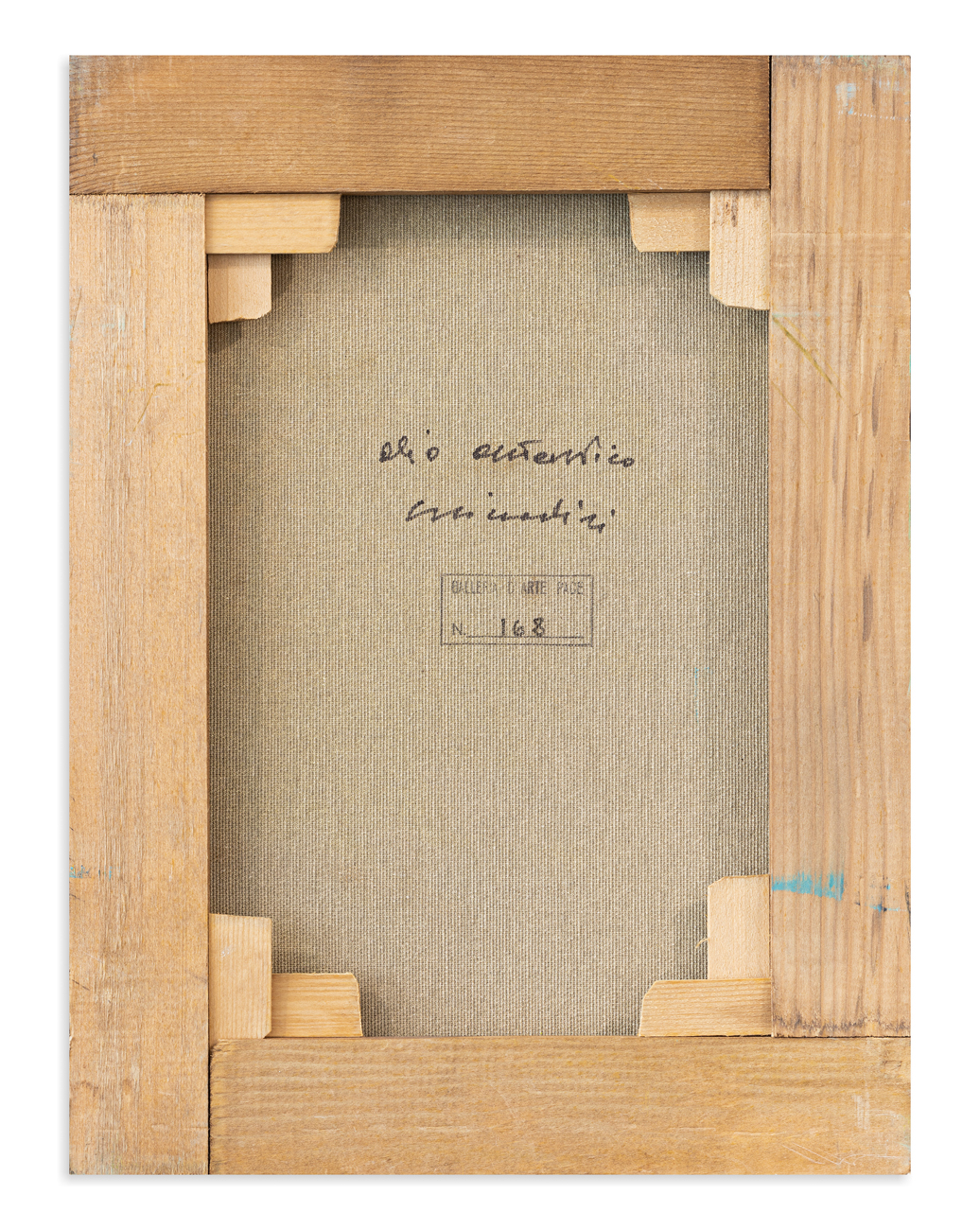 Timbro della Galleria d'Arte Pace (MI) con relativo numero di inventario al retro