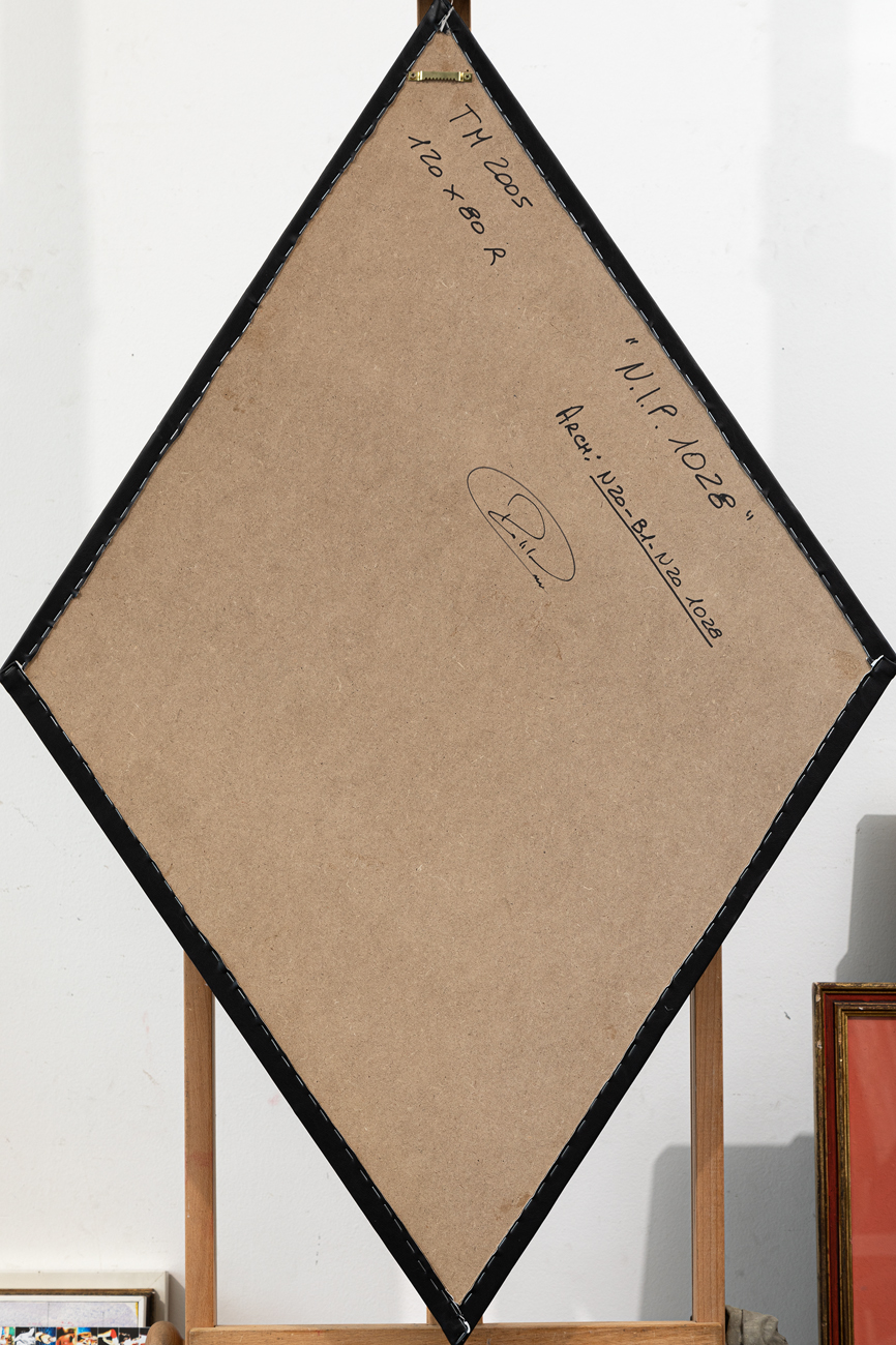 Firma, titolo, datazione, misure e numero di archivio al retro