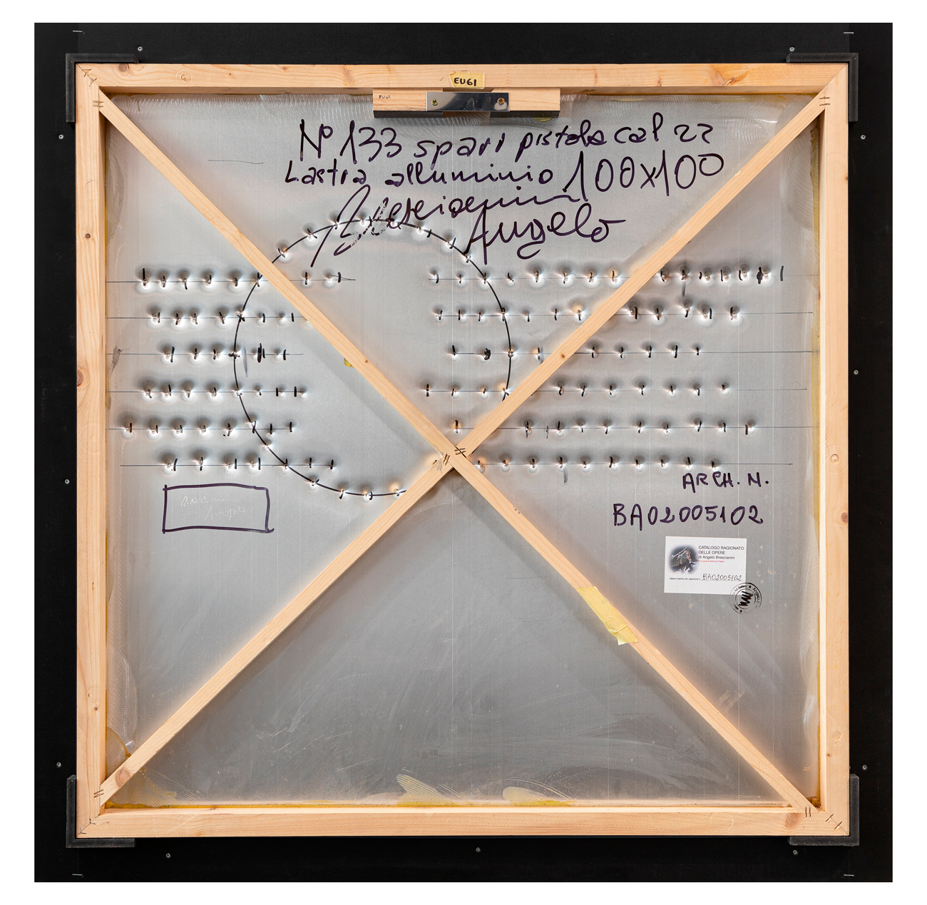 Etichetta del Catalogo Ragionato delle Opere di Angelo Brescianini al retro