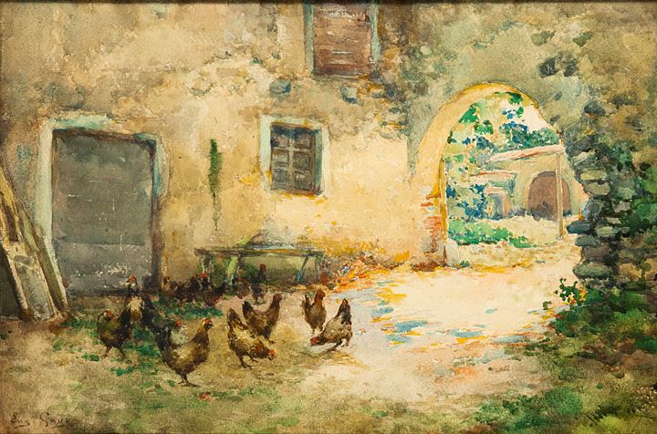 GAYS EUGENIO Rivara Canavese (TO) 1861 - 1938 Cuorgnè (TO) "Cortile con...