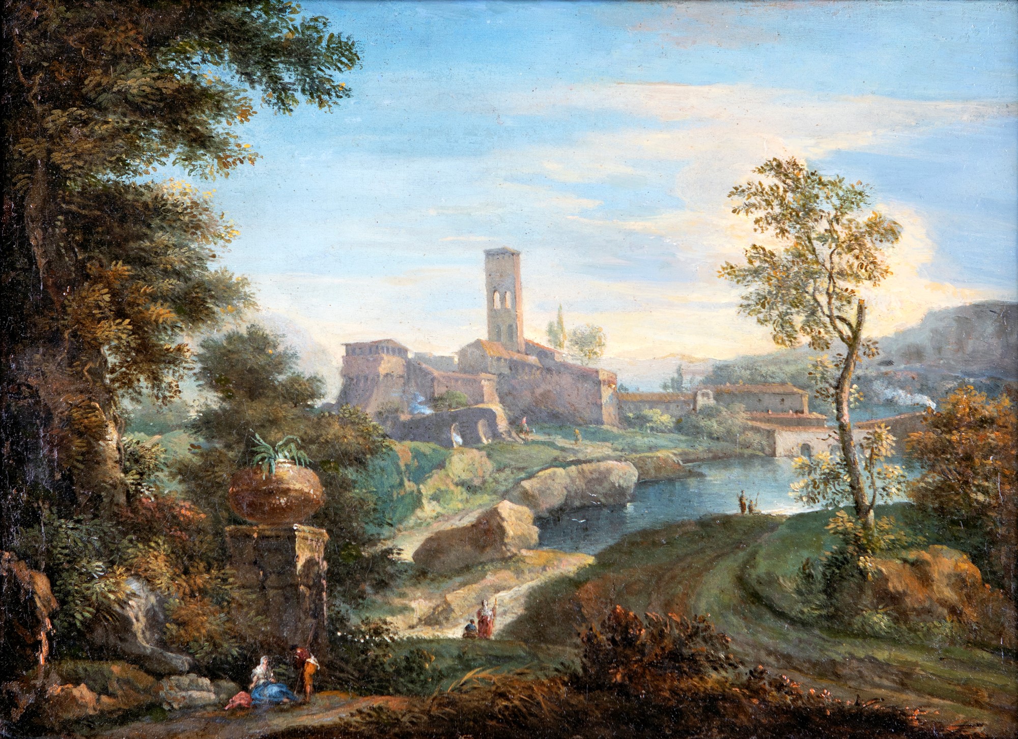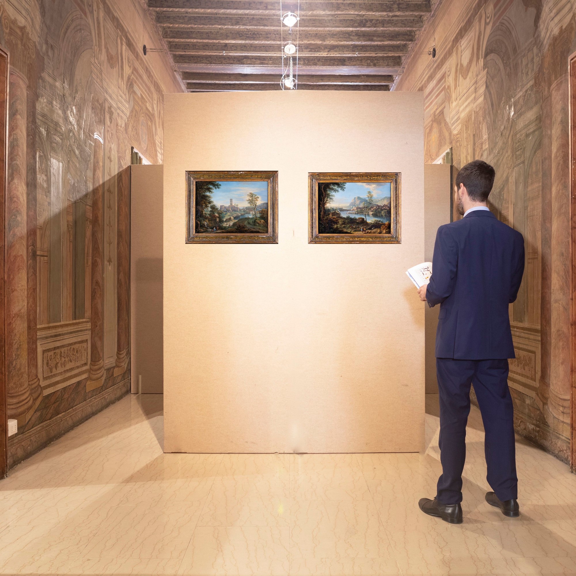 Lotto 14 | Paolo Anesi (Roma, 1697 - Roma, 1773) Coppia di vedute con paesaggi fluviali Coppia di olii su tela cm 34x47 - in cornice: 48x62